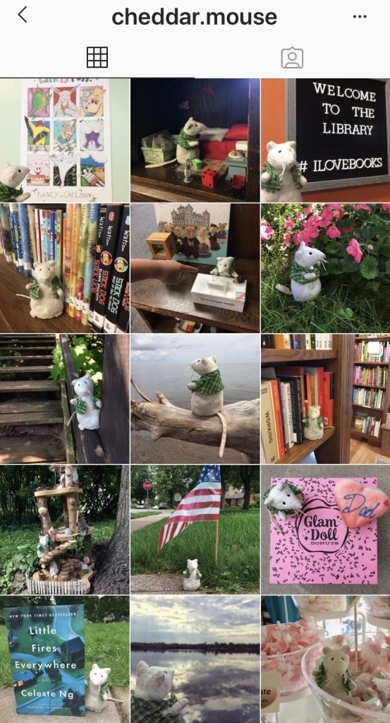 Cheddar Mouse is the cutest account. It’s the bookish adventures of a library mouse! Instagram